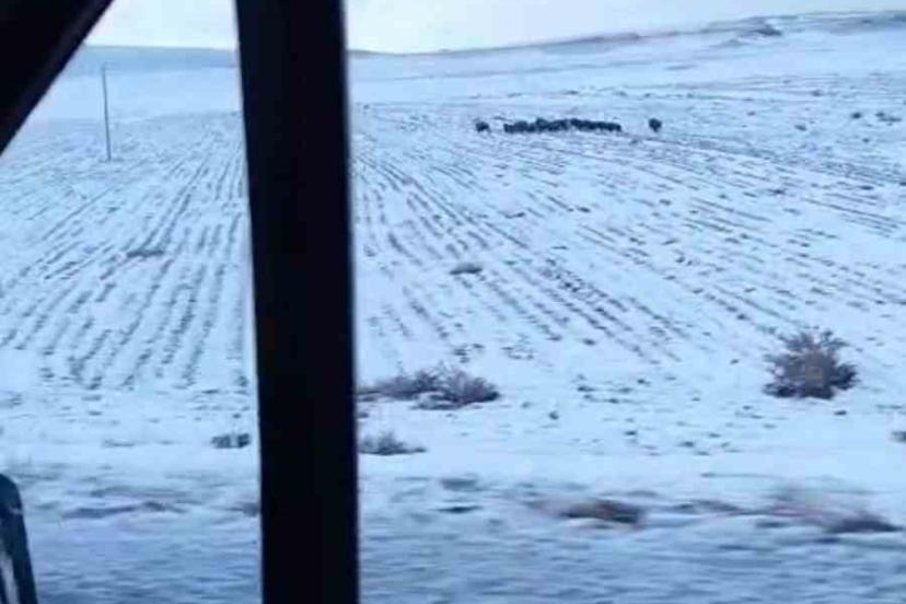 Bitlis’in Adilcevaz ilçesinde yol kenarındaki tarlada gezen domuz sürüsü cep telefonlarıyla görüntülendi.