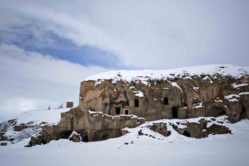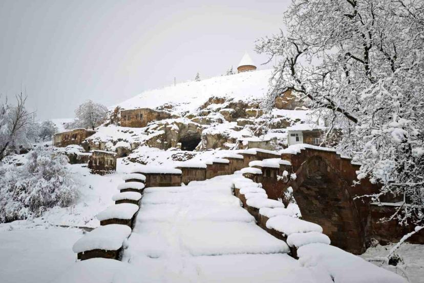 İlçedeki Emir Bayındır Kümbeti ve Hasan Padişah Kümbeti başta olmak üzere tarihi Bayındır Köprüsü ve mağara evler de karla birlikte farklı bir güzelliğe büründü. Tarihi dokuyla kar manzarasının birleştiği alanlar, dron ile görüntülendi.