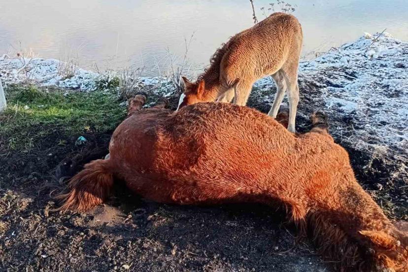 Ardahan’da yaşanan olay, görenlerin yüreğini burktu. Zorlu hava şartlarının etkili olduğu bölgede bir kısrak hayatını kaybederken, geride kalan yavru tayın davranışı duygusal anlara sahne oldu.