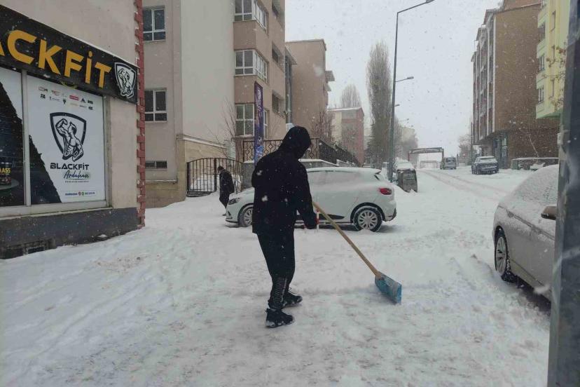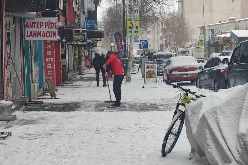 Gece saatlerinde etkili olan kar yağışının ardından sabahın erken saatlerinde cadde ve sokaklar beyaza büründü. Kent merkezinde kar kalınlığının artmasıyla birlikte esnaf, işyerlerinin önünde biriken karı temizlemek için harekete geçti.