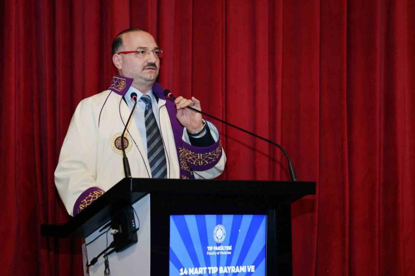 Tıp Fakültesinin sağlık hizmeti sunumu, nitelikli hekim yetiştirilmesi ve bilimsel araştırmalar alanında önemli başarılara imza attığını belirten Hacımüftüoğlu, öğretim üyelerinin özverili çalışmaları ve öğrencilerin yüksek motivasyonu sayesinde üniversitenin sağlık bilimlerinde her geçen gün daha ileri bir noktaya ulaştığını ifade etti. Konuşmasında akademik unvan alan öğretim üyelerini de tebrik eden Hacımüftüoğlu, yeni unvanlarının hayırlı olması temennisinde bulundu.
