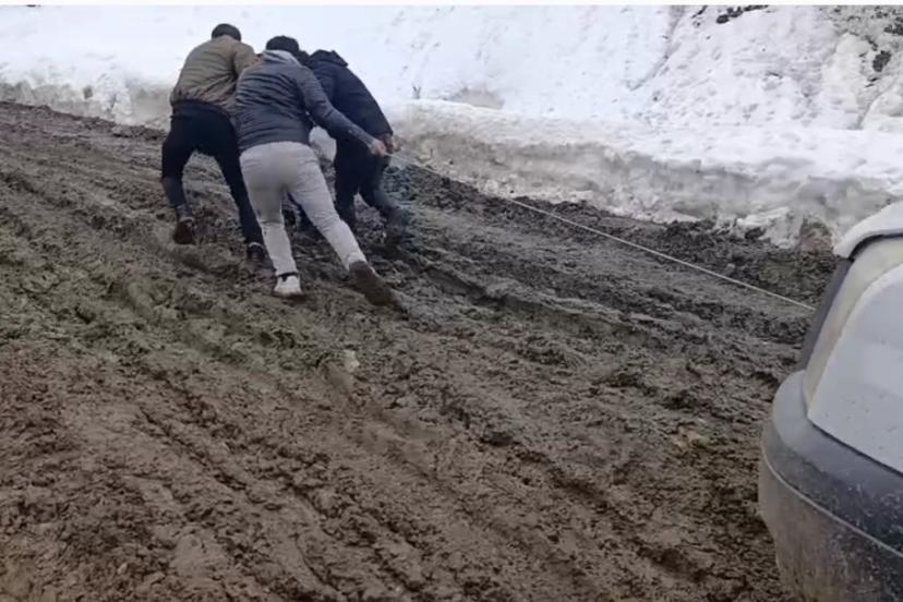 Van’ın Bahçesaray ilçesinde etkili olan olumsuz hava ve yol şartları, vatandaşların günlük yaşamını zorlaştırmaya devam ediyor. Temel ihtiyaçlarını karşılamak için yola çıkan vatandaşlar, çamura saplanan araçlarını kendi imkanlarıyla kurtarmaya çalışıyor.