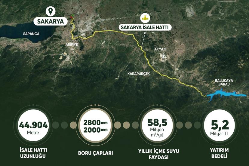 Tarım ve Orman Bakanı İbrahim Yumaklı, Ballıkaya Barajı’ndan şehir merkezine yıllık 58,5 milyon metreküp ilave içme suyu sağlayacak isale hattı projesi için sözleşmenin imzalandığını bildirdi. Devlet Su İşleri Genel Müdürlüğü ile Sakarya Büyükşehir Belediyesi arasında imzalanan protokol kapsamında, Ballıkaya Barajı’ndan şehir merkezine içme suyu sağlayacak İsale Hattı 1'inci Kısım Projesi’nin inşa sözleşmesi imzalandı. Bakan Yumaklı, sosyal medya hesabından yaptığı açıklamada, "DSİ ile Sakarya Büyükşehir Belediyesi arasındaki protokol kapsamında Ballıkaya Barajı’ndan şehir merkezine yılda 58,5 milyon metreküp ilave içme suyu sağlayacak İsale Hattı 1'inci Kısım Projesinin inşa sözleşmesi imzalandı." dedi.