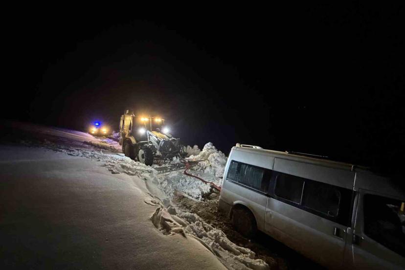 Edinilen bilgilere göre, olay, dün gece saatlerinde Başkale Koru mevkiinde meydana geldi. Başkale’den Koru istikametine doğru gelen ve sürücüsünün kimliği ile plakası öğrenilemeyen minibus, direksiyon hakimiyetinin kaybedilmesi sonucu yol kenarındaki kara saplandı. Aracın bulunduğu yerden çıkarılması için Başkale Belediyesi karla mücadele ekipleri devreye girdi. Ekipler belediyeye ait iş makinesi ile aracın kar birikintisinden kurtarılmasını sağladı. Olayda herhangi bir yaralanma yaşanmadı.