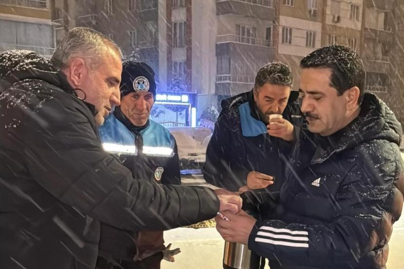 Malatya’da etkisini artıran kar yağışı sonrası Battalgazi Belediyesi ekipleri ilçe genelinde kar küreme ve tuzlama çalışmalarını aralıksız sürdürürken, Battalgazi Belediye Başkanı Bayram Taşkın da gece saatlerinde sahaya indi. Orduzu Bahçebaşı başta olmak üzere birçok noktada görev yapan ekiplerle bir araya gelen Başkan Taşkın, çalışmaları yerinde inceleyerek personelle sohbet etti ve ekiplere sıcak çay ikramında bulundu.