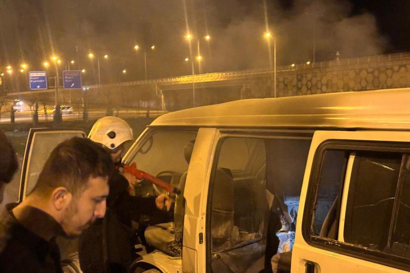 Batman'da seyir halindeyken alev alan panelvan tipi araç, itfaiyenin müdahalesiyle söndürülürken, araç kullanılamaz hale geldi.
