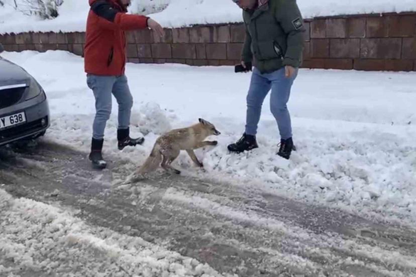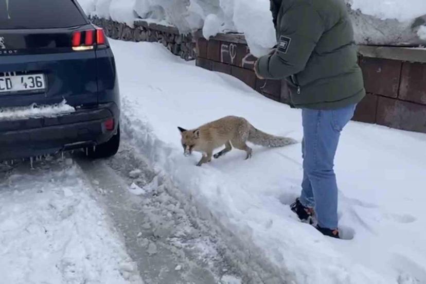 Tilkiyi fark eden vatandaş Mesut Kanat, "İlçemizde yaklaşık 2,5 metre kar var. Aç olan hayvanlar şehre indi. Bu tilki de şehre inmiş açlıktan ne yapacağını bilmiyor. Şimdi de alıp veterinere götüreceğiz" dedi.