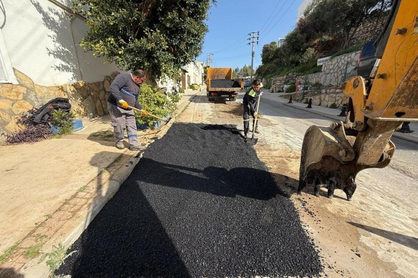 Fen İşleri Müdürlüğü ekipleri, Çiftlik Mahallesi Generler Caddesi ve Kocaköseler Sokak'ta asfalt serim çalışmalarını tamamlarken, finişerle asfalt serimi ve yol düzenleme çalışmaları belirlenen plan doğrultusunda kent genelinde devam ediyor. Ekipler ayrıca, Bodrum genelinde farklı dış etkenler nedeniyle yollarda oluşan bozulmalara da yama asfalt çalışmalarıyla müdahale ediyor.