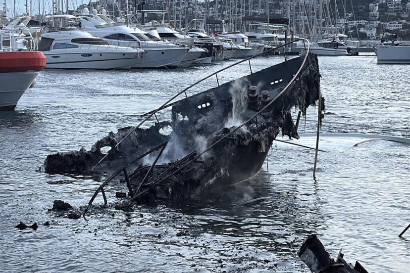 Bodrum'daki yat yangını sonrası temizlik ve enkaz kaldırma çalışması başlatıldı