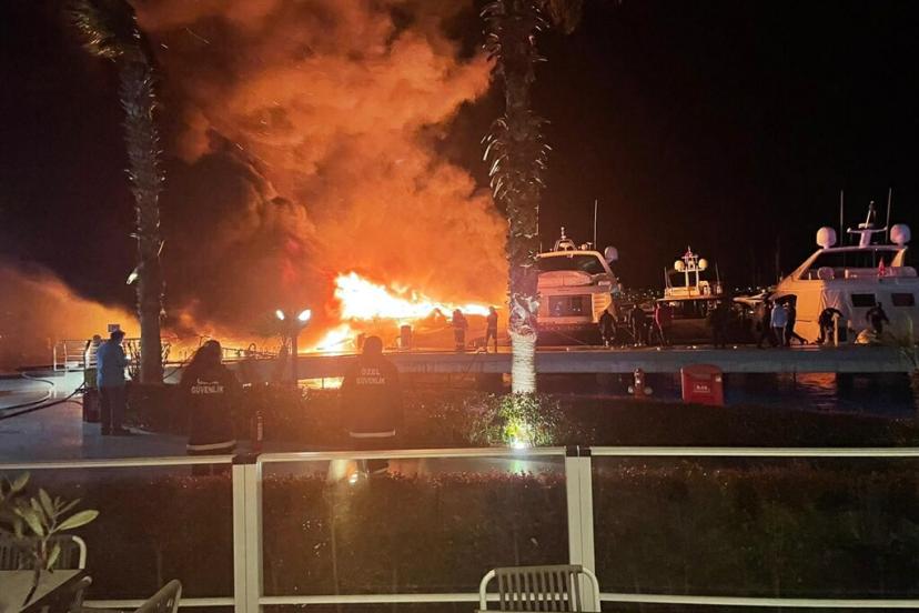 Yalıkavak Mahallesi'nde bir marinada bağlı bulunan motoryatta dün saat 04.00 sıralarında yangın çıktı. Alevler kısa sürede büyüyerek diğer motoryatlara da sıçradı. İhbarla bölgeye itfaiye ekipleri sevk edildi. Bodrum Bölge Liman Başkanlığı’nın talimatıyla Bodrum’dan 1, Güllük’ten ise 2 liman römorkörü ve kıyı emniyetine bağlı römorkörler de bölgeye gönderildi. Ekipler, karadan ve denizden alevlere müdahale etti. Bodrum Sahil Güvenlik Karakol Komutanlığı ekipleri de denizde önlem aldı. Yangında boyları 20 ila 30 metre arasında değişen Sisu, Dadstoy, Sieasta, Floating Asset, Cher, İceberg, Lulu D Angel isimli motoryatlar battı, Breeze isimli motoryat hafif hasar aldı.