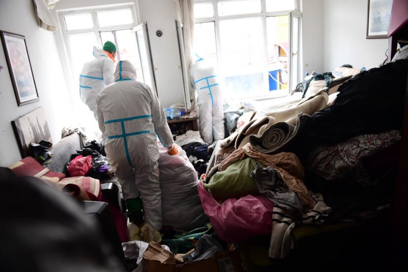 Mahkeme kararının ardından adrese giren ekipler, kapsamlı bir temizlik çalışması yürüttü. Ev içerisinde uzun süredir biriktirilen, kötü kokuya neden olan kıyafet ve çeşitli atıklar dikkatli şekilde ayrıştırılarak dışarı çıkarıldı.