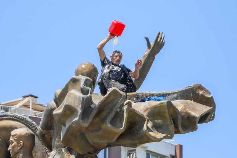ANTALYA'da elindeki benzin bidonu ile Cumhuriyet Meydanı'ndaki Ulusal Yükseliş Anıtı'na çıkan Ertan Ö.