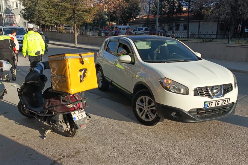 Kaza, dün Adliye Caddesi'nde meydana geldi. Ahmet Enes D., yönetimindeki 07 TG 321 plakalı ciple İshak V. idaresindeki 15 ABD 170 plakalı motosiklet çarpıştı. Kazada yaralanan motosiklet sürücüsü sağlık ekiplerince hastaneye, cip sürücüsü ise ifadesi alınmak üzere polis merkezine götürüldü.