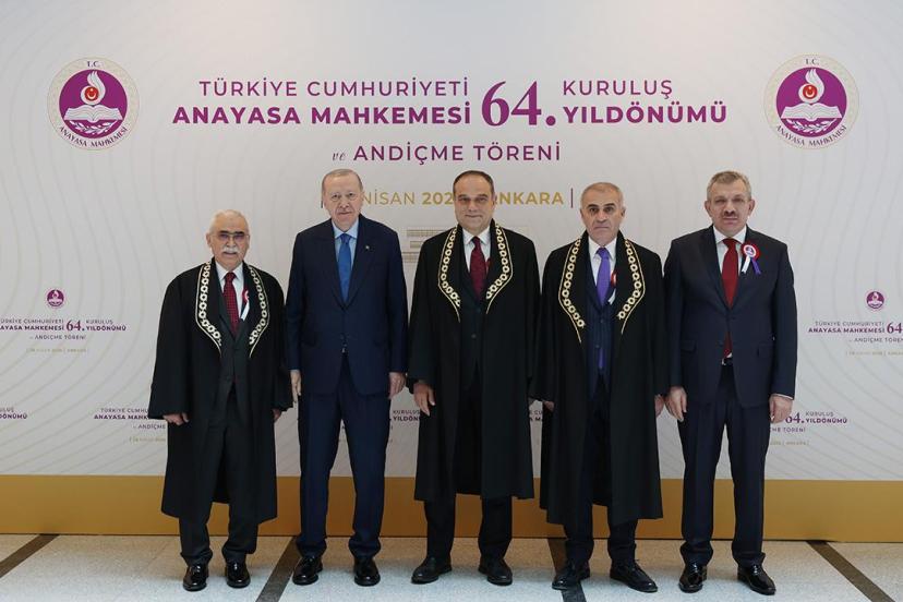 Cumhurbaşkanı Recep Tayyip Erdoğan, Anayasa Mahkemesi 64. Kuruluş Yıl Dönümü ve Ant İçme Töreni'ne katıldı. Törende yeni üye Şaban Kazdal yemin ederken cübbesi AYM Başkanı Kadir Özkaya tarafından giydirildi.