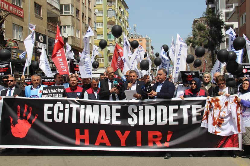 Açıklamanın sonunda "Eğitimde şiddete sıfır tolerans" vurgusu yapan Tekdemir, "Biz susmuyoruz! Eğitim çalışanlarına yönelik şiddet sadece bir sendika sorunu değil, bir memleket meselesidir. Öğretmenin itibarı zedelenirse, devletin temeli sarsılır. Öğrencilerimiz ve öğretmenlerimiz her sabah evlerinden 'acaba bugün başıma bir şey gelir mi?' endişesiyle çıkmamalıdır. Okullarımız tam anlamıyla güvenli limanlar olana dek, her platformda haykırmaya ve mücadele etmeye devam edeceğiz. Eğitimde şiddete sıfır tolerans! Öğretmenime dokunma, geleceğimi karartma!" dedi.