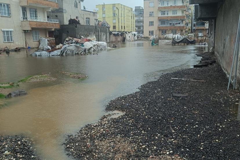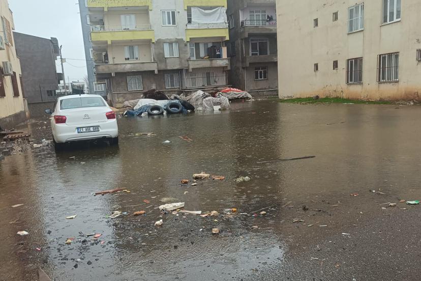 Diyarbakır'ın merkez Yenişehir ilçesi Çelikevler Mahallesi 309. Sokak'ta Mahalle sakinleri, her yağmur yağışı sonrası oluşan taşkın nedeniyle evlerinden çıkmakta zorlandıklarını belirtti.