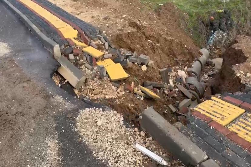 Edinilen bilgilere göre, yağışın ardından zeminin yumuşaması sonucu yolun bir kısmında çukur meydana gelirken, kaldırımda da kısmi hasar oluştu.