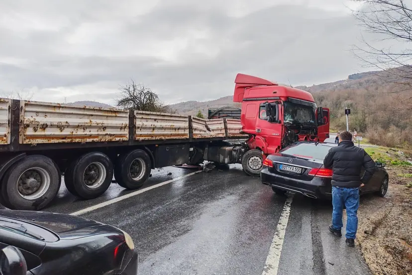 Kaza nedeniyle güzergâh, büyük araç trafiğine geçici olarak kapatıldı.
