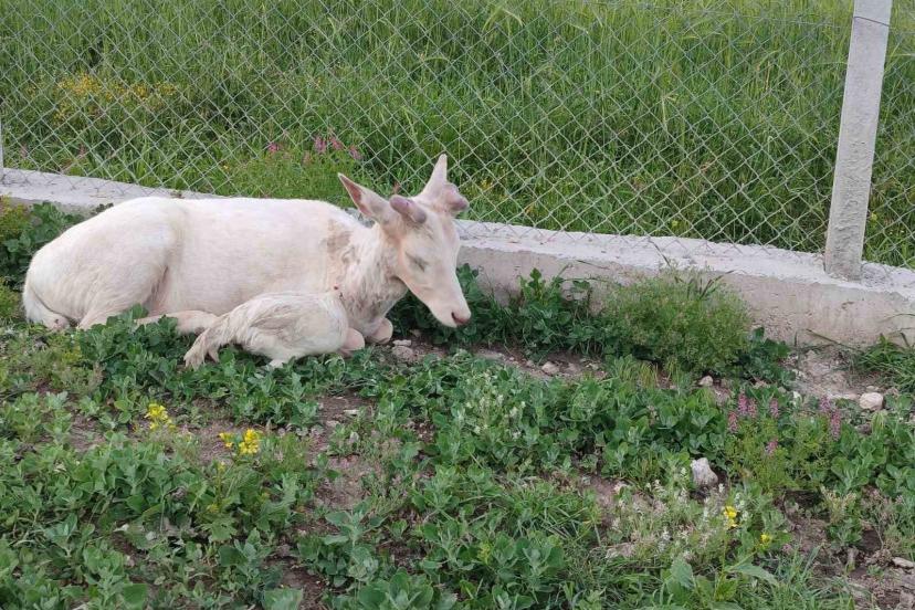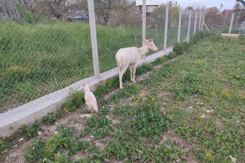 Elazığ’ın Ağın ilçesinde bembeyaz rengiyle dikkat çeken alageyik, doğal yaşam alanından bir evin bahçesine inerek ev sahibinin horozlarıyla vakit geçirdi. O anlar kameraya yansıdı.