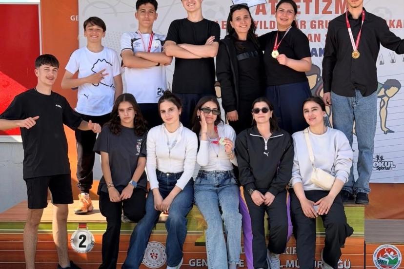 Diyarbakır’da düzenlenen Okullar Arası Gençler A-B Atletizm Grup Yarışmaları’nda mücadele eden Elazığ Spor Lisesi sporcuları önemli bir başarıya imza attı. Yarışmalarda; Gülnaz Çetin gülle atma ve disk atma branşlarında, Leyla Arlı 3000 metre yürüyüşte, Cennet Ağırtaş uzun atlamada ve Ömer Arda Sazak ise 100 metre engelli yarışında birincilik elde etti. Gösterdikleri üstün performansla baraj derecelerini geçen başarılı sporcular, 16-17 Mayıs 2026 tarihlerinde Eskişehir’de düzenlenecek olan Türkiye finallerine katılma hakkı kazandı.