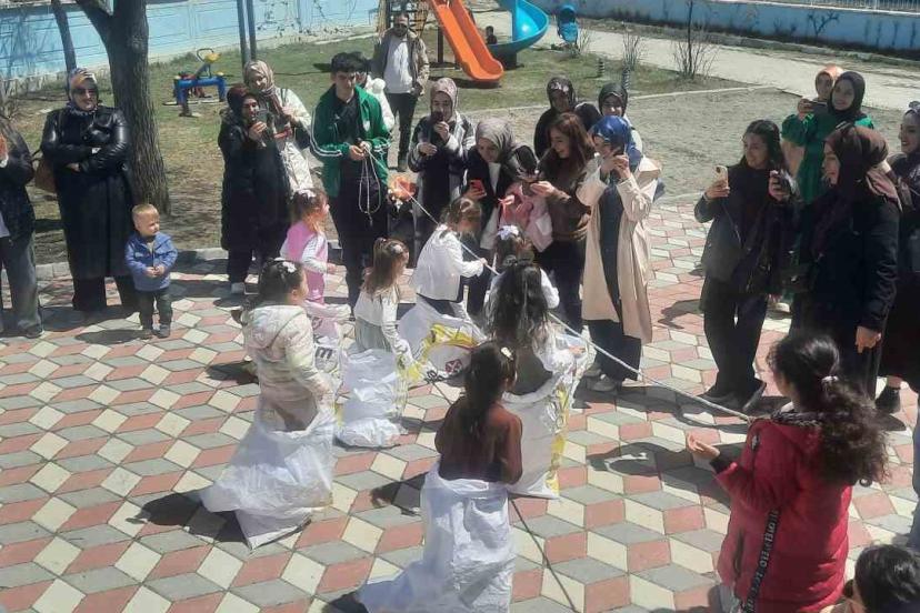 ?Okul bahçesindeki şenlikte veliler; halat çekme, yumurta taşıma ve çuval yarışı gibi geleneksel oyunlarda kıyasıya mücadele etti. Kendi anne ve babalarını yarışırken gören çocukların heyecanı görülmeye değerdi. Velilerin ardından sahneye çıkan minikler ise oyunlardaki becerileriyle herkesi hayran bıraktı.