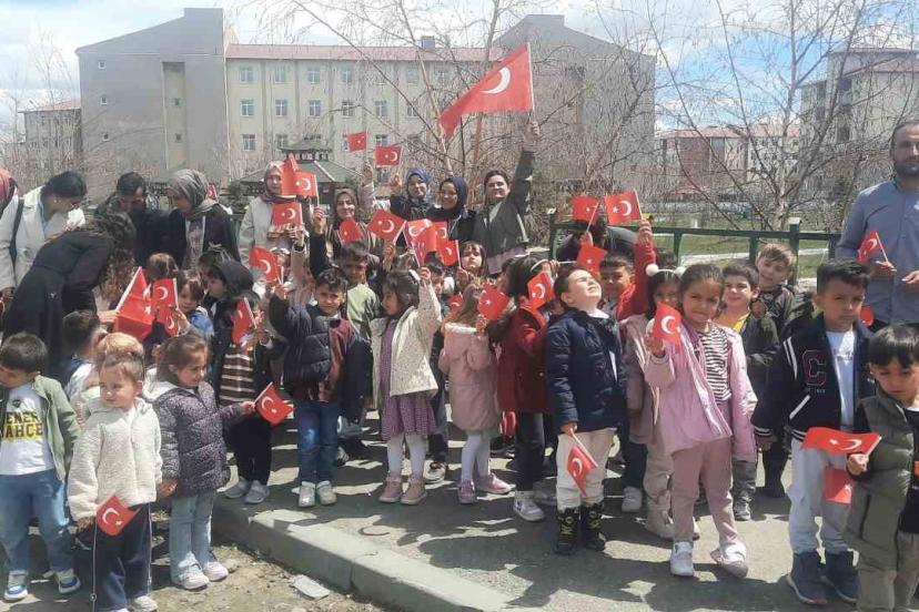 Ağrı’nın Eleşkirt ilçesinde 23 Nisan heyecanı, 16 Nisan Anaokulu’nun düzenlediği anlamlı yürüyüş ve şenlikle zirveye çıktı.