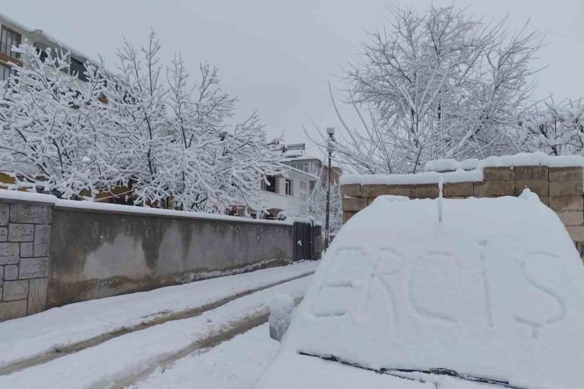 Erciş ilçesinde etkili olan kar yağışı hayatı olumsuz etkiledi. Erciş merkezde 20 santimetreyi geçen kar kalınlığı, yüksek kesimlerde ise 40 santimetreyi buldu. Birçok köy ve mahalle yolunun kapandığı Erciş’te eğitim öğretime de 1 gün ara verildi.