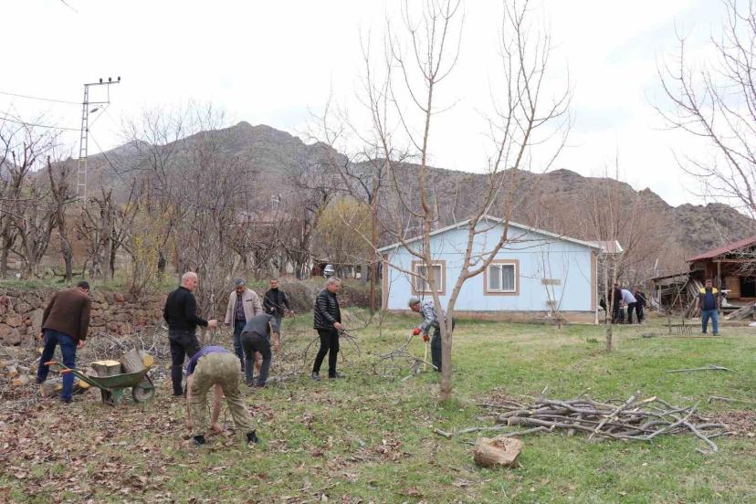 Erzurum’un Olur ilçesi Ormanağzı köyünde, havaların ısınmasıyla ağaç budama, çapalama ve bahçe temizliği çalışmalarına başlandı.