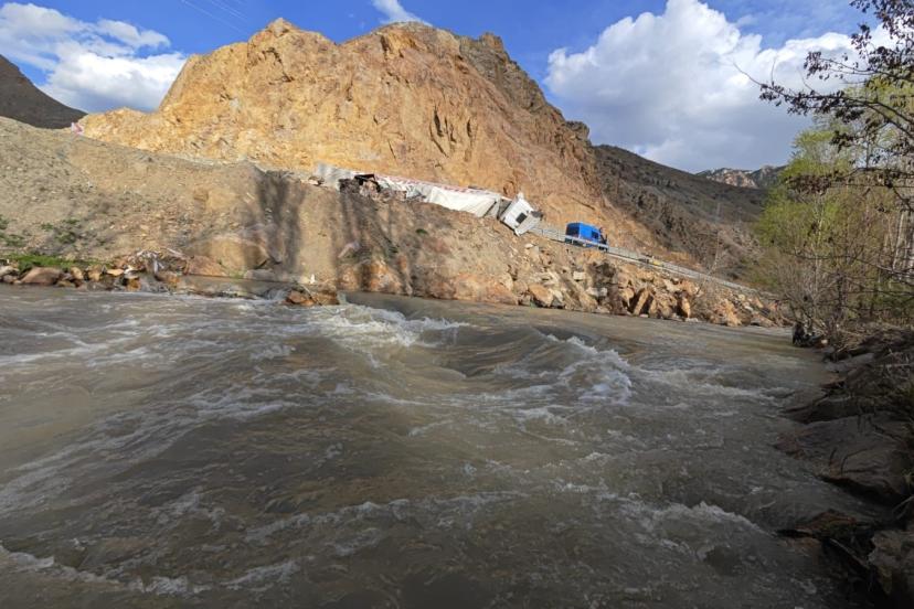 Edinilen bilgilere göre, atık kağıt yüklü tır sürücüsü, keskin virajı alamayarak direksiyon hakimiyetini kaybetti. Kontrolden çıkan araç bariyerleri aşarak yan yattı. Tırın, hemen yanı başından geçen Tortum Çayı’na uçmasına ise metreler kala durması muhtemel bir faciayı önledi.