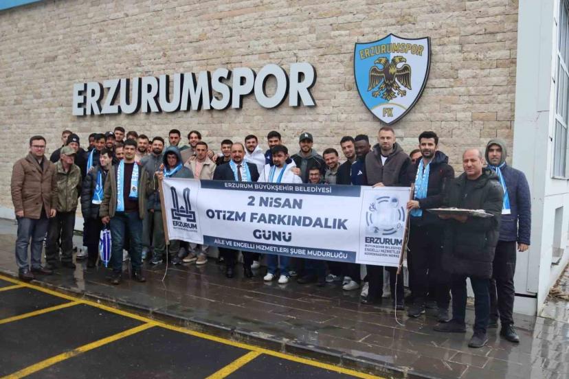 Erzurum Büyükşehir Belediyesi aile ve engelli hizmetleri koordinasyon merkezinde eğitim alan otizmli çocuklar, Otizm Farkındalık Günü dolayısıyla Erzurumspor antrenmanını ziyaret edip futbolcularla bir araya geldiler.