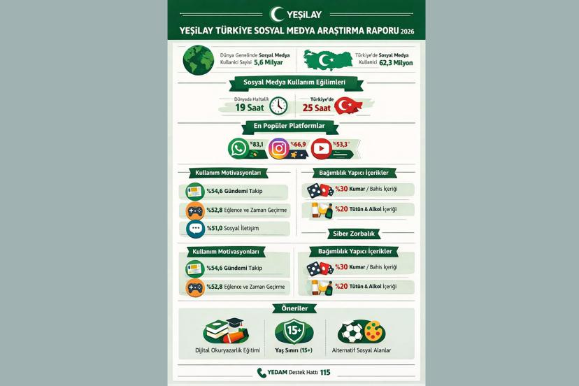 "Karşı karşıya olduğumuz tablo oldukça ciddidir. Dijital bağımlılık, gençliğimizi sessiz ve hızla etkileyen bir tehdit olarak çevrelemektedir. Artık sorun yalnızca ekran süresi değil; zihinsel, duygusal ve sosyal bir kuşatma ile karşı karşıyayız. Bu gidişata sessiz kalamayız. Yeşilay olarak, çocuklarımızı ve gençlerimizi bu görünmez tehlikeden korumak için sahada daha güçlü ve kararlı bir mücadele başlatıyoruz. Ailelerimizi, eğitimcilerimizi ve tüm toplumu bu konuda birlikte hareket etmeye davet ediyoruz."