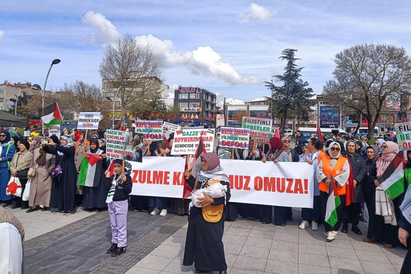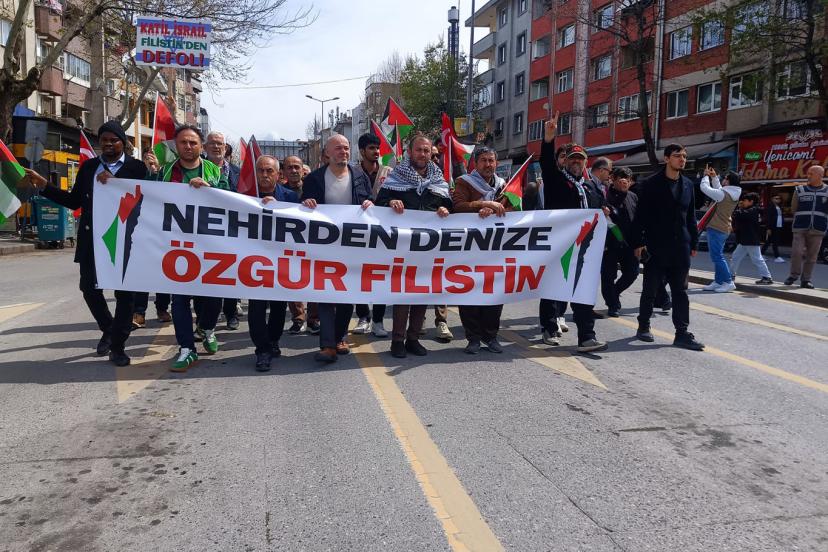 Yola çıkacak olan filoya destek amacıyla Adapazarı Salko Camii önünde bir araya gelen topluluk, ellerinden Filistin ve Türkiye bayrakları ile Gar Meydanı'na kadar yürüdü.