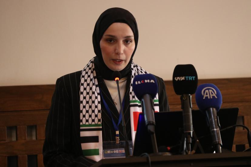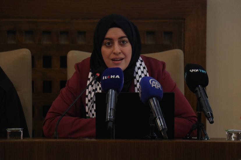 Filistinli esir Hasan Seleme'nin eşi Gufran Zamel, "Bugün huzurlarınızda sadece sıradan bir hikaye anlatmak için bulunmuyorum. Aksine, Filistinli kadının hem zindanların içinde hem de dışında yaşadığı canlı bir gerçeği, bireysel acıyı aşan ve her Filistinli eve yayılan toplu bir ıstırabı dile getirmek için buradayım. Şu anda bizler burada otururken, parmaklıklar ardında aralarında akademisyenlerin, doktorların, öğretmenlerin, avukatların ve hatta reşit olmayan kız çocuklarının bulunduğu 86 Filistinli kadın tutsak bulunmaktadır. Ancak tablo sadece bunlarla sınırlı değil. Bugün yaklaşık 10 bin Filistinli esir gerçeğiyle karşı karşıyayız; bu da demek oluyor ki her gün korku, kaygı ve öldürücü bir bekleyiş içinde yaşayan 10 bin Filistinli aile var demektir. Her esirin arkasında uykusuz bir anne, yol gözleyen bir eş ve babalarının yokluğunda, belki de hiç gelmeyecek bir kavuşma umuduyla büyüyen çocuklar var." dedi.