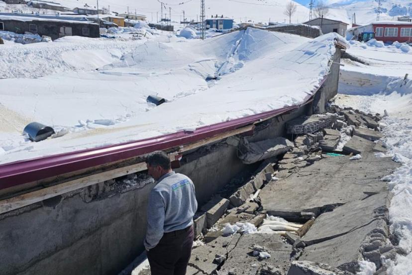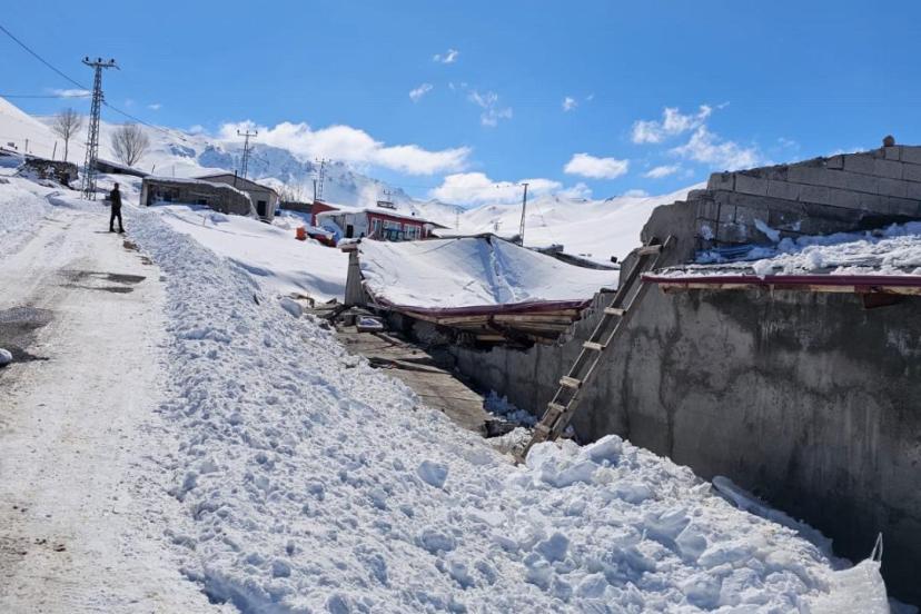 Iğdır’ın Tuzluca ilçesine bağlı Arslanlı köyünde yoğun kar yağışı nedeniyle bir ahır çöktü. Olaydan yaklaşık bir saat önce hayvanların dışarı çıkarılması muhtemel bir faciayı önledi.