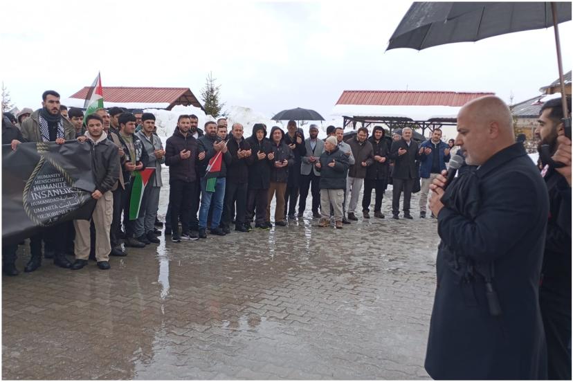 Bitlis Filistin Dayanışma Platformu ve Bitlis Eren Üniversitesi öğrenci kulüpleri öncülüğünde, Gazze'de yaşanan soykırım ve Filistinli esirlere yönelik idam kararlarına dikkat çekmek amacıyla basın açıklaması gerçekleştirildi.