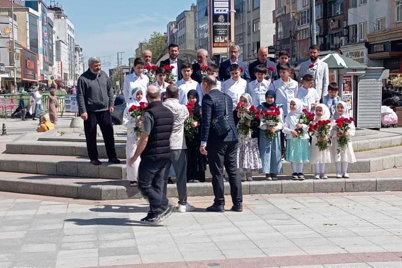 Şehrin birçok noktasında gezen anons araçlarıyla davet çalışmalarını sürdüren Peygamber Sevdalıları, etkinliğe saatler kala birçok ilçede halka yönelik gül dağıtıldı.