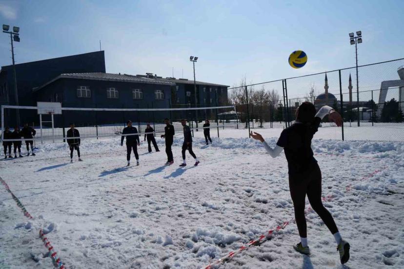 Kampüste kar voleybolu heyecanı
