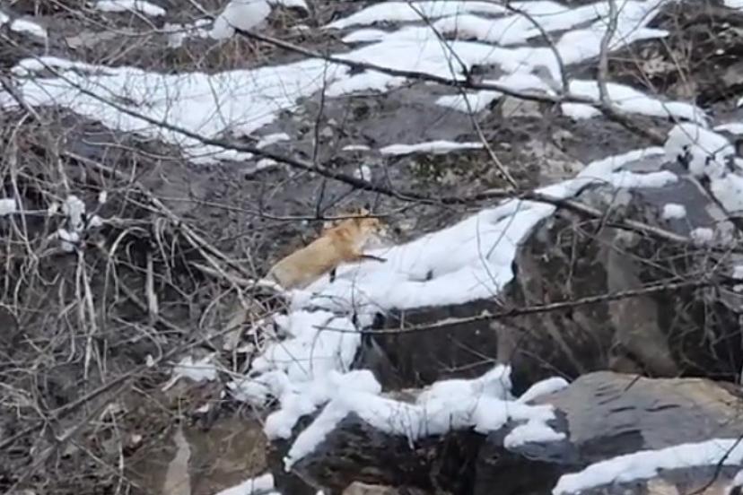 Tunceli-Ovacık karayolunda ağır kış şartları yaban hayatını olumsuz etkilemeye devam ediyor. Yoğun kar yağışı ve dondurucu soğuklar nedeniyle besin bulmakta zorlanan bir tilki, karla kaplı dağlık alanda yiyecek ararken görüntülendi. Yol kenarında bir süre dolaşan tilki, vatandaşlara doğru bakarak çevreyi kontrol etti. Soğukkanlı tavırlarıyla dikkat çeken hayvan, kısa süre sonra dağlık alana yönelerek gözden kayboldu.