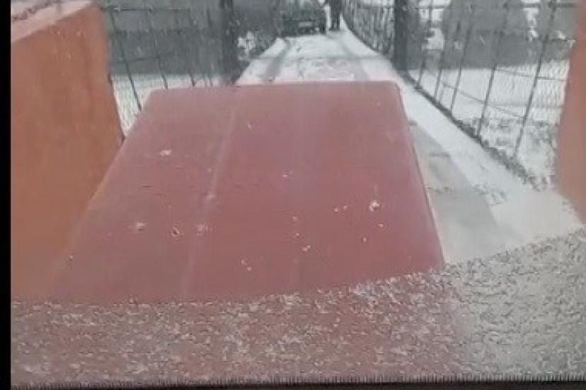 Kars’ta kar yağışı ve soğuk hava nedeniyle buz pistine dönen asma köprüde kayan bir otomobil, korku dolu anların yaşanmasına neden oldu.