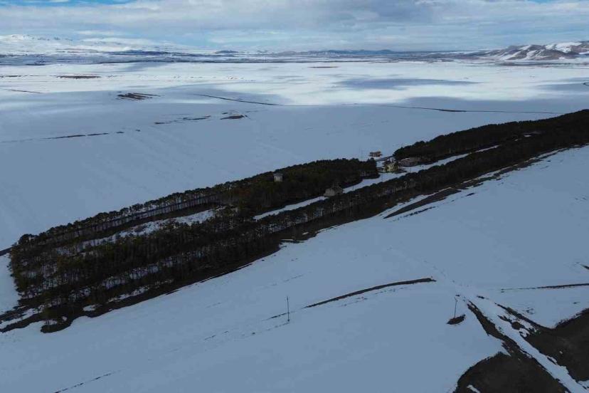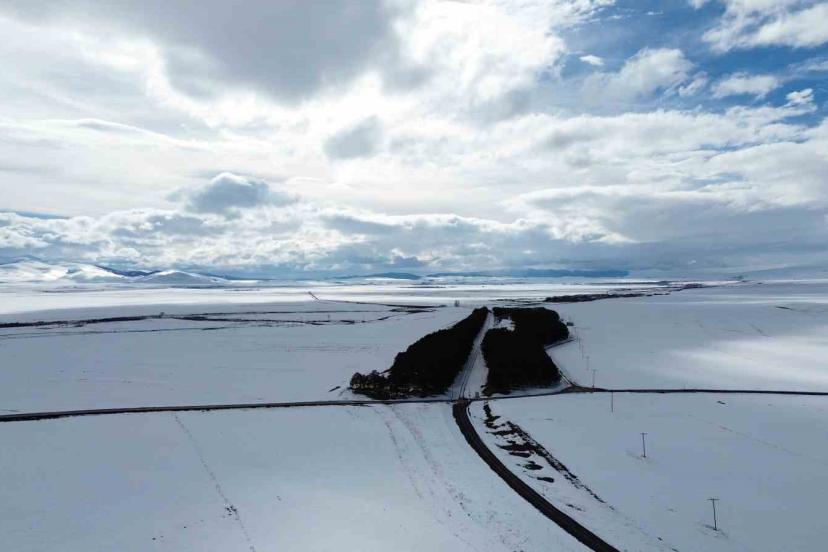 Bölgedeki geniş tarım arazileri de yoğun kar yağışından nasibini aldı. Bahar ekim sezonuna hazırlanan tarlalar, kalın kar tabakasıyla tamamen örtülerek adeta beyaz bir denizi andırdı. Havadan çekilen görüntülerde, karla kaplı arazilerin geometrik yapısı dikkat çekerken, doğanın sakinliği görenleri büyülüyor.