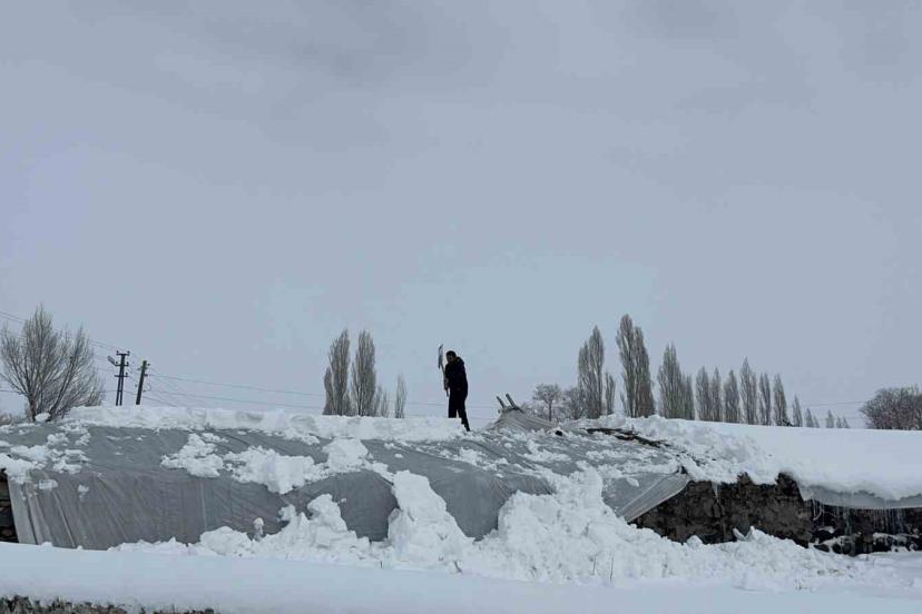 Köy sakinleri, hem evlerinin önünü hem de hayvan barınaklarını kar yükünden korumak için yoğun çaba sarf ediyor.
