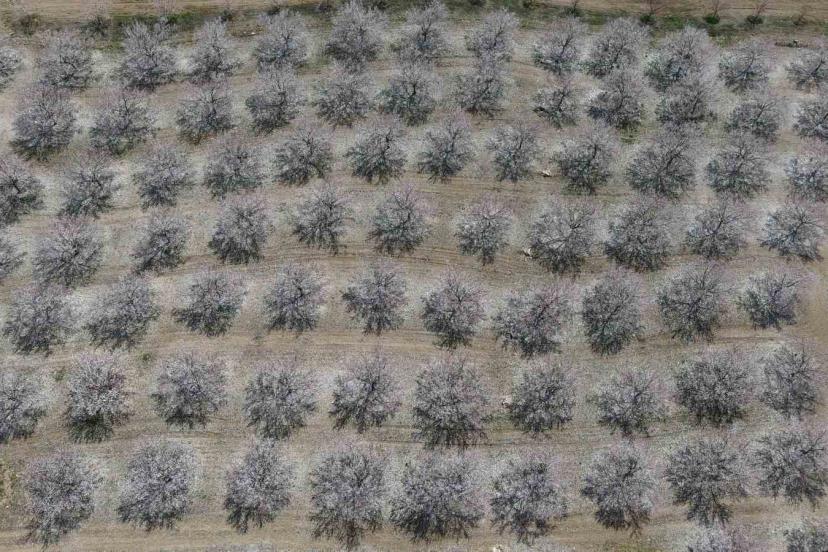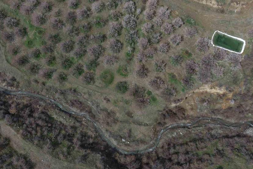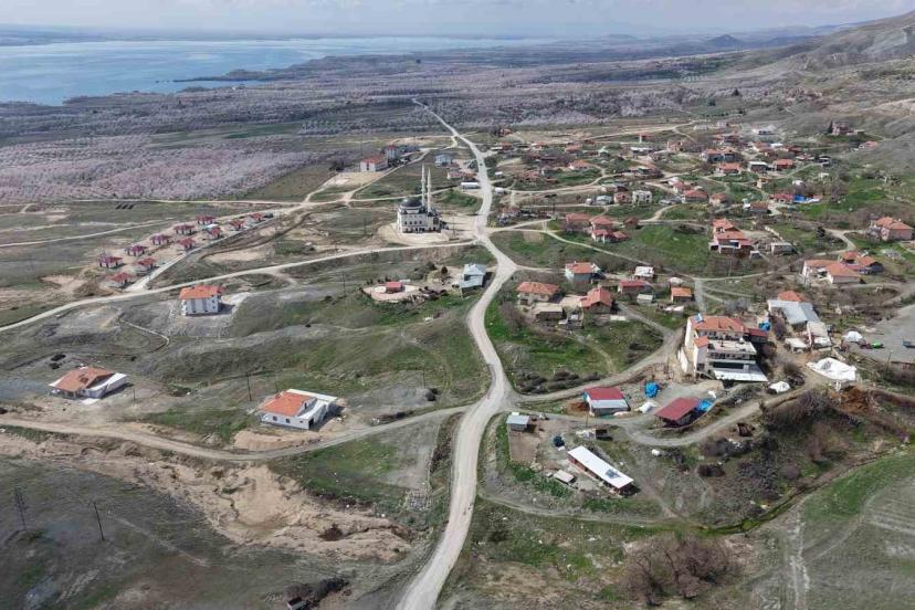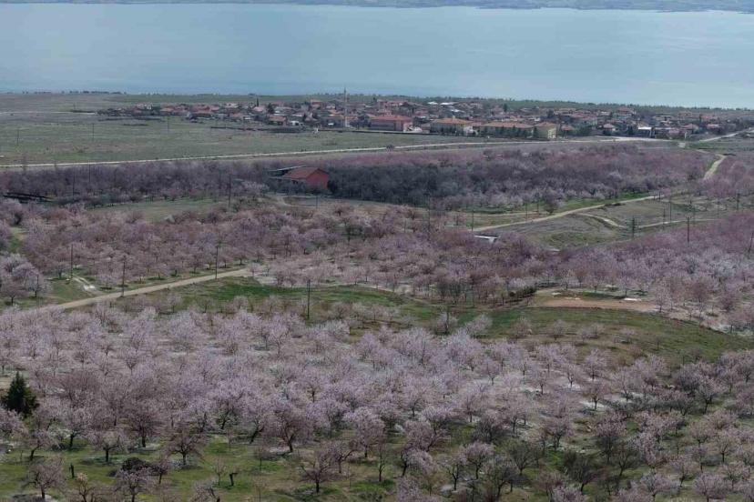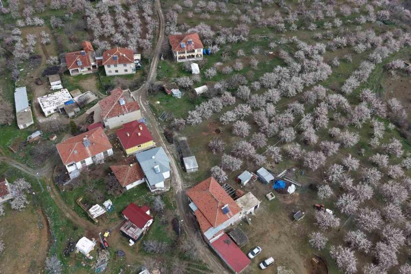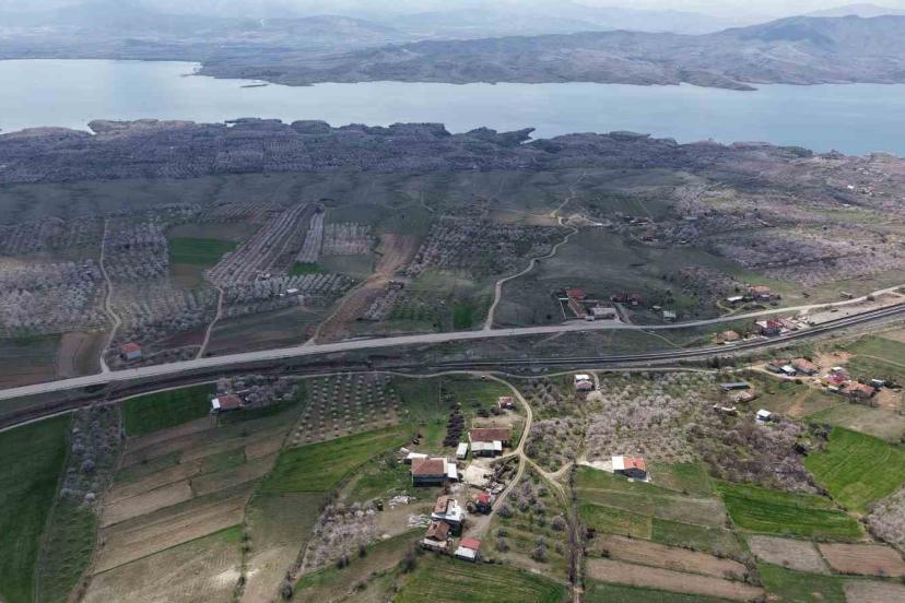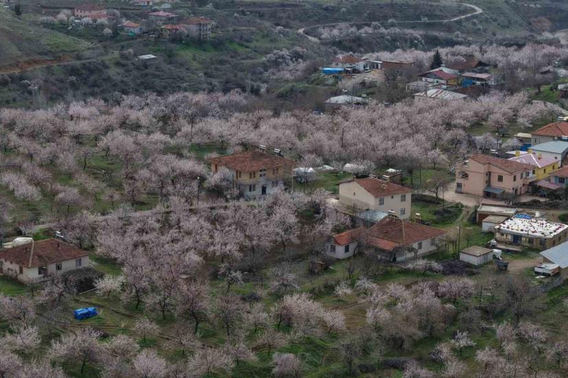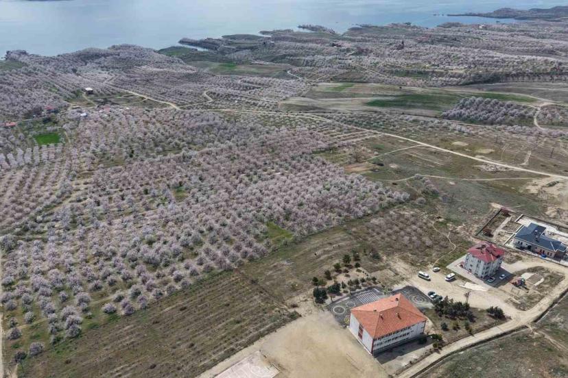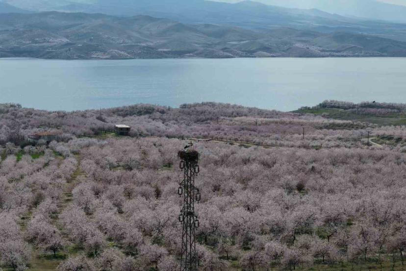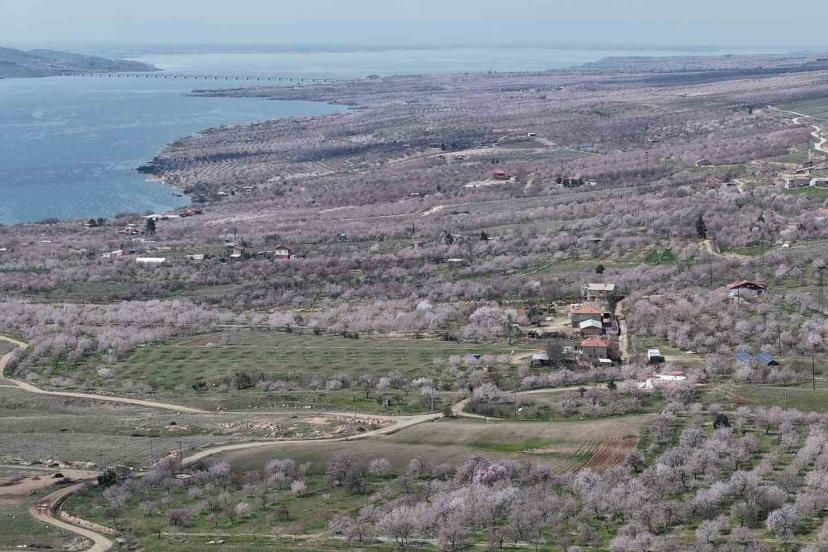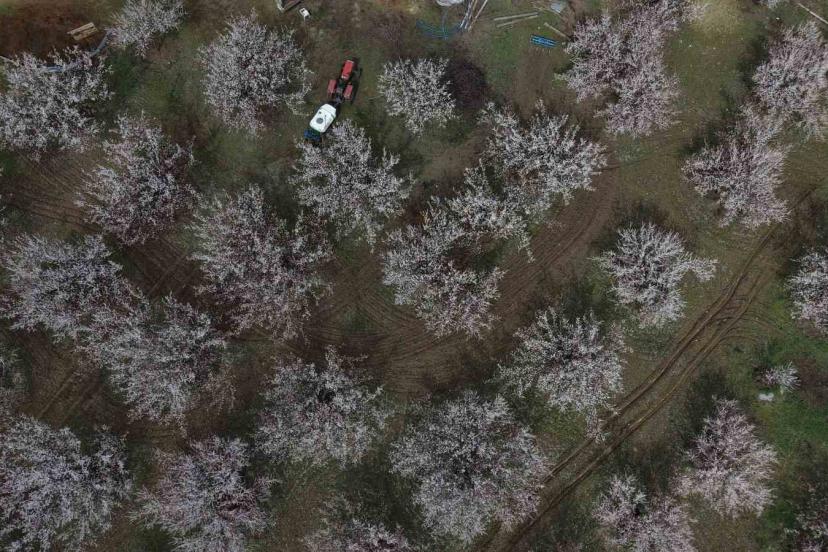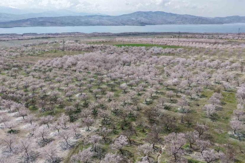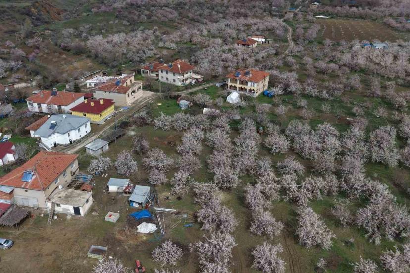 Baskil’de kayısı bahçeleri çiçek açtı, beyaza bürünen ağaçlar havadan görüntülendi.