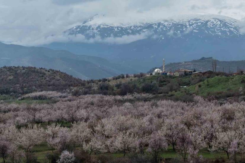 Kayısı bahçeleri beyaza büründü, ortaya eşsiz manzaralar çıktı