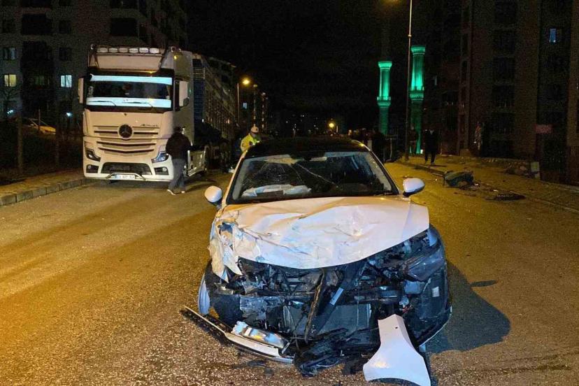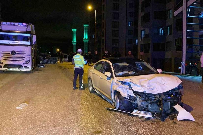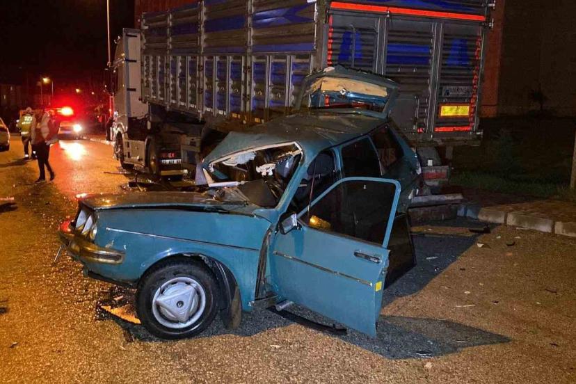 Kazaya karışan otomobil, park halindeki tıra çarptı: 1’ağır 4 yaralı