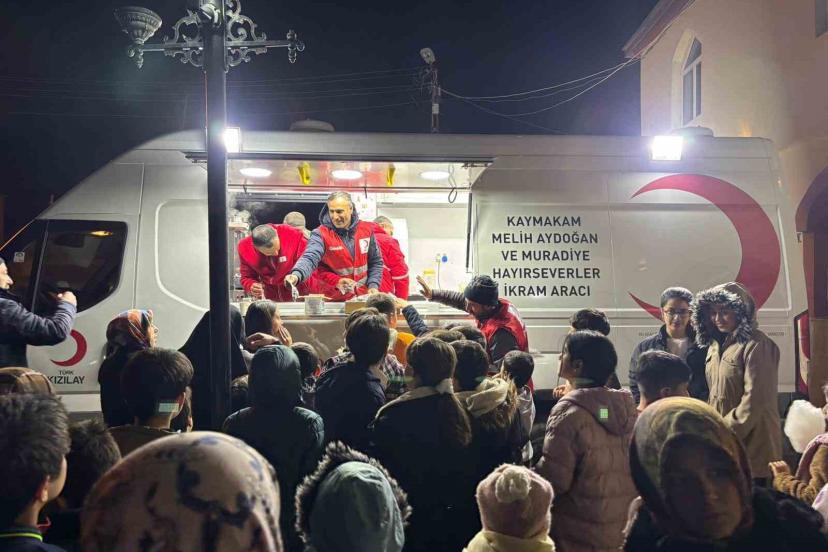 Van’ın Muradiye ilçesinde Kızılay Şubesi tarafından teravih namazı sonrası ikram etkinliği düzenlendi.