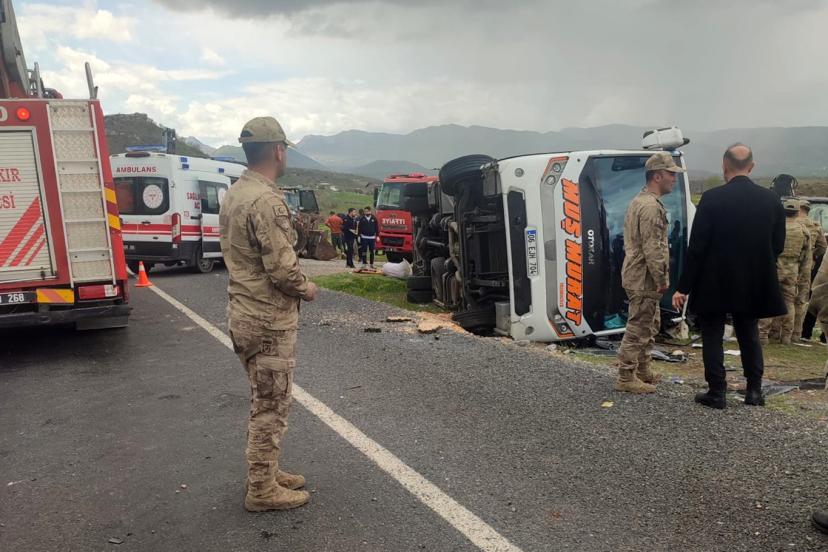 Diyarbakır'ın Lice ilçesinde yolcu midibüsünün devrilmesi sonucu meydana gelen kazada bir kişi öldü 13 kişi yaralandı.