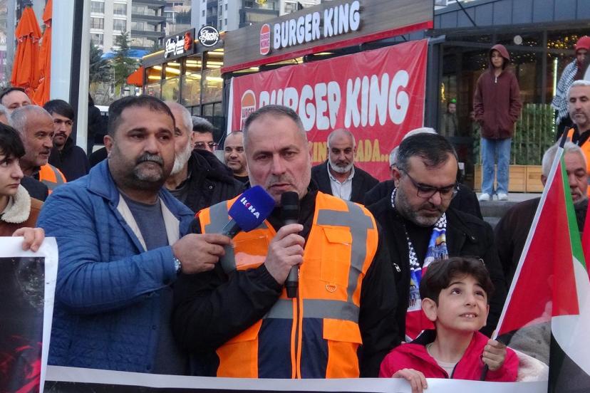 Toplanan grup, Burger King'in işgalci siyonist askerlere finansal destek sağladığını belirterek, söz konusu işletmeyi Malatya'da istemediklerini ifade etti.