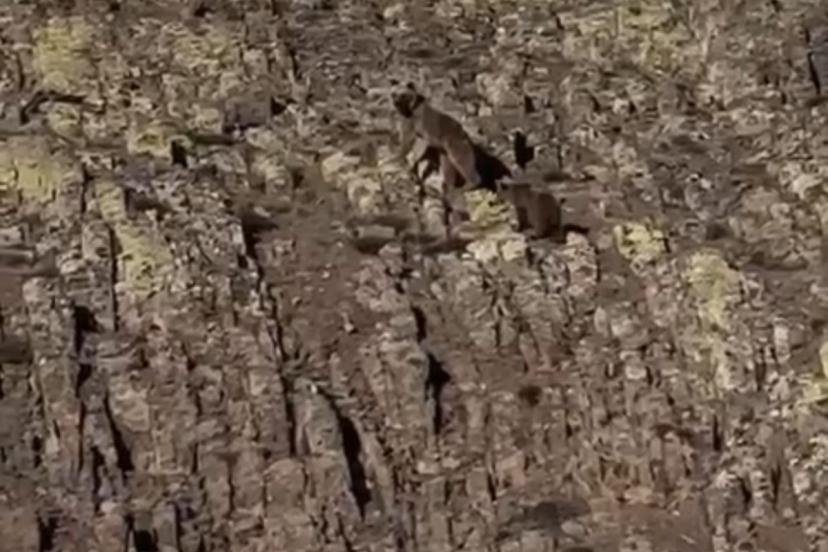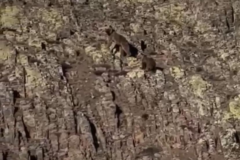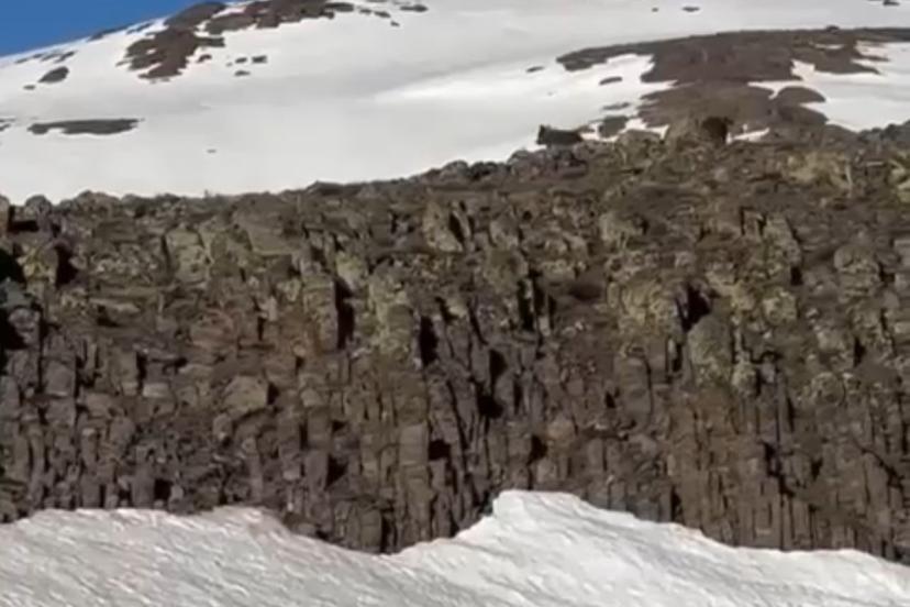 Vatandaşları fark eden anne ayı ve yavrusu bir süre sonra dağın zirvesine doğru ilerleyerek gözden kayboldu.