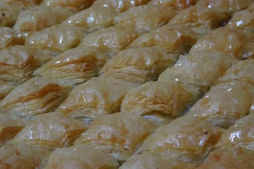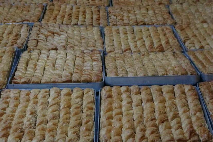Malatya’nın Battalgazi ilçesinde kadınlar, Ramazan Bayramı öncesi artan baklava ve tatlı siparişlerini yetiştirmek için yoğun mesai harcıyor.