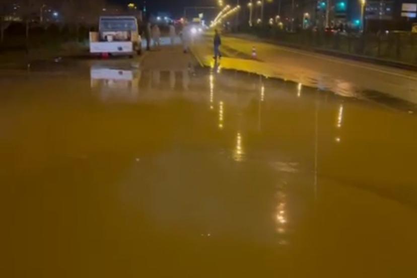 Patlama sonucu suyun yola taşmasıyla İpek Yolu adeta göle döndü.